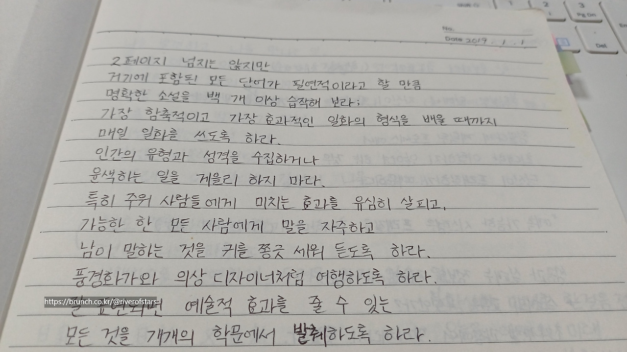 2페이지를 넘지 않되, 포함된 모든 단어가 필연적이라고 느껴질 만큼 명확한 소설을 백 편이상 습작하라.