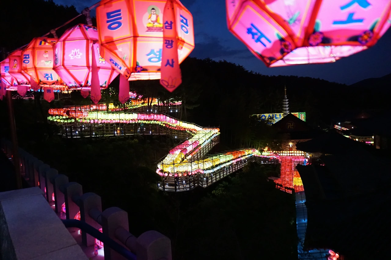 등반 아닌 등반을 마치니 연등이 만들어낸 절경이 펼쳐졌다. 나중에 인터넷을 찾아보니 사진 좌우에 있는 건물이 멋진 사진을 건질 수 있는 포인트였다. 그 사실을 모른 채 다시 삼광사 입구 쪽으로 내려가면서 이 건물에 들어가 보려고 했는데 사람들로 무척 북적거렸다. 역시 좋은 사진을 건지기 위해서는 부지런해야 한다.^^