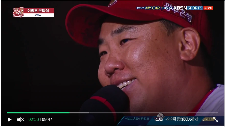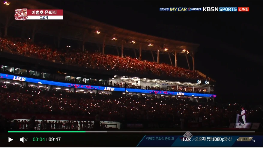 @관련 영상(마지막 타석이었던 5회 말 2사 만루 타석 때 보내준 팬들의 환호에 감사해하는 장면이다.)
