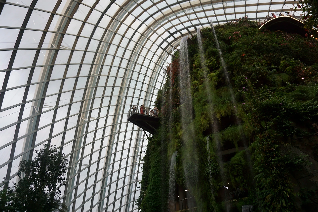 7시 20분까지는 1시간 30분 정도 여유가 있어 표지판을 보고 클라우드 포레스트가 있는 곳으로 향했다. 가는 길이 은근히 멀게 느껴졌는데 막상 근처에 도착하니 어마어마하게 긴 줄에 더 놀랐다. 다행히 생각보다 입장은 빨랐다. 입구에 들어가면 곧바로 세계에서 가장 크다는 실내 인공 폭포를 볼 수 있다. ‘와!’라는 탄성과 함께 돔 천장을 바라보면 관람로가 폭포를 둘러싸고 꼬불꼬불 높게도 있고, 다시 시선을 내려 주위를 둘러보면 그 관람로를 완주하려는 사람들로 가득했다. 나는 ‘7시 20분 OCBC 스카이웨이 입장’이라는 시간에 쫓겼고 결국 관람을 포기하고 나가자는, 나의 여행 역사(?)를 통틀어 가장 냉정한 결정을 했다.