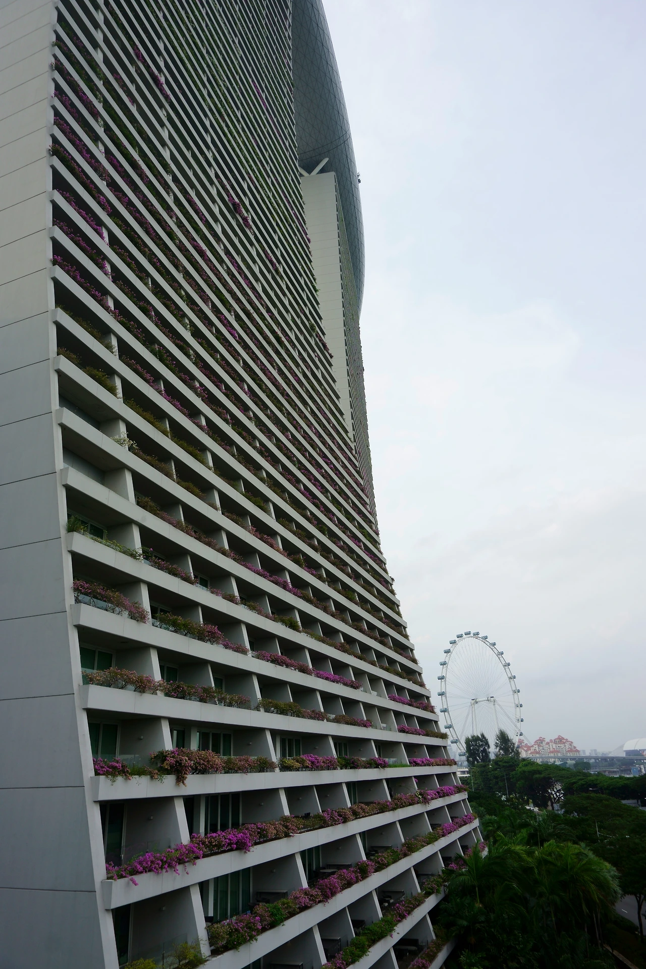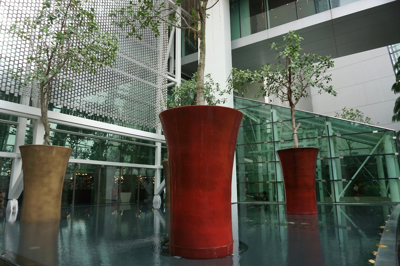 가든스 바이더 베이로 가기 전 마리나 베이 샌즈 호텔을 들를 수밖에 없었다. 워낙 유명한 호텔이기도 했지만 솔직히 가든스 바이 더 베이로 가는 길을 못 찾은 탓도 있었다. 다리를 건너와서 곧장 왼쪽 편으로 내려가 싱가포르 플라이어(Singapore Flyer)를 왼편에 두고 가면 된다. 혹시나 에어컨 바람을 쐬며 가든스 바이 더 베이로 가는 길이 있지 않을까 싶은 행운까지 바라며 호텔로 들어갔다. 거대한 화분들, 기울어진 채 버티고 서 있는 건물에 감탄하던 찰나, 정신을 차려보니 요행은 없었다. 가든스 바이 더 베이로 가고자 다시 습한 밖으로 나섰다. 건물 외부에 고대하던 목적지로 향하는 엘리베이터가 있었다.
