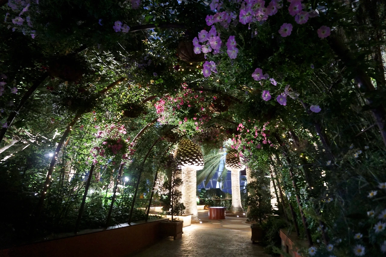 나는 또 한 번 잘한 결정이라고 다독이며 플라워 돔으로 갔다. 하지만 결론부터 말하면 이건 좋지 않은 선택이었다. 해가 진 뒤 찾은 플라워 돔은 너무 깜깜했다. 투명한 유리 돔이었기 때문에 깜깜한 밤의 어둠이 고스란히 들어왔고, 중간중간 조명이 켜져 있었지만 꽃과 장식물들의 본래 색깔이 무엇인지 도저히 알 수 없었다.