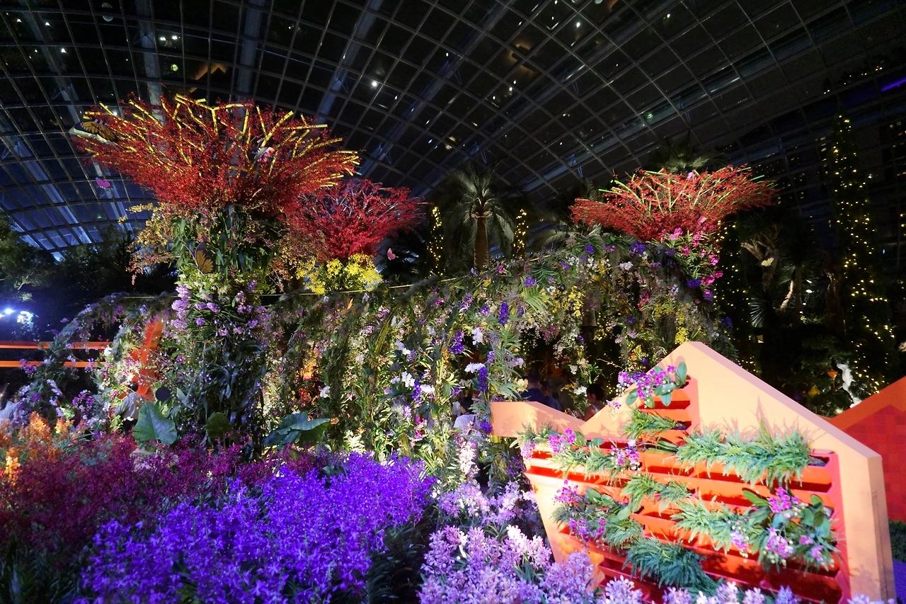 음악에 맞춰 슈퍼트리들의 화려한 불빛 쇼가 펼쳐지는 가든 랩소디는 매일 밤 7시 45분, 8시 45분에 펼쳐진다. 하지만 나는 또 한 번 과감한 결정을 내렸다. 가든 랩소디는 내일 보기로 하고, 오늘은 그 화려한 쇼를 뒤로한 채 플라워 돔을 보기로 한 것이다. 공식 홈페이지에도 나와 있지만 이 쇼를 보기 위해서는 서둘러 자리를 잡는 게 좋다. 아니나 다를까 지상에 내려왔을 땐 쇼가 시작되기 직전이었고, 사람들은 바닥에 발 디딜 틈 없이 앉아 있었다. 그 앞에 서기도, 자리를 비집고 앉기도 힘들었다.