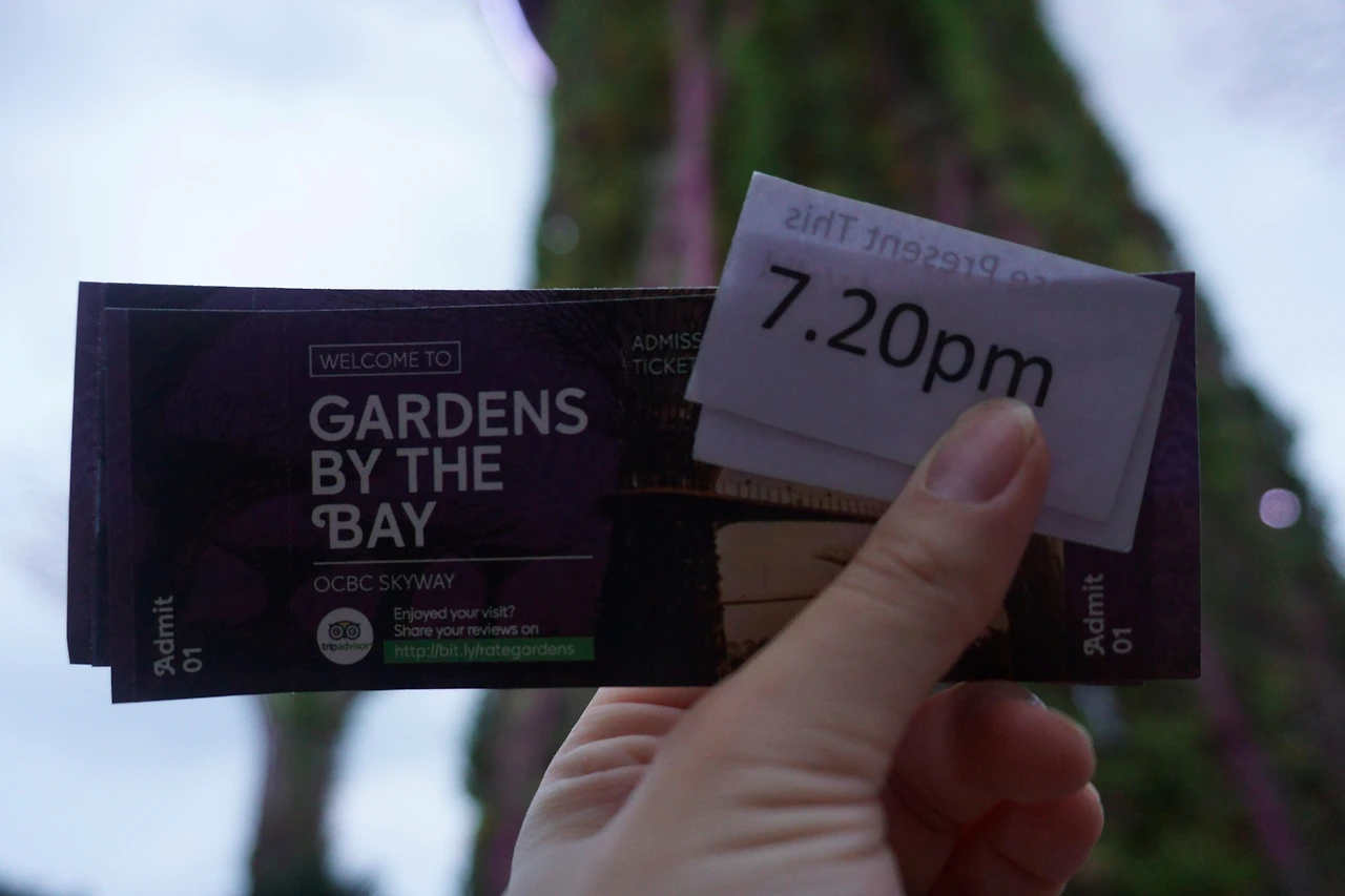 OCBC 스카이웨이 입장권도 미리 구입할 수 있는데 싱가포르 출발 전 관람 여부를 확정하지 못해 구입을 보류했었다. 현장에 도착해 관람을 결정했고 7시 20분에 입장하는 표를 구했다. 이곳은 슈퍼트리들을 22미터 높이의 공중다리로 이어 놓은 구조 때문에 시간대별로 입장하는 인원을 제한하고 있다.