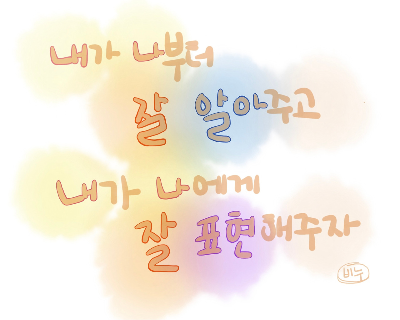 다행히 다른 이에게 전해들은 것만으로도 충분히 파악되는 상황이었다. 또 나도 모르고 있던 내 마음을 알아차려서인지 더 이상 궁금하지 않았다. 마음 속에 물음표가 계속 있었던 것은 내 마음을 내가 잘 알아채지 못해서 였나보다. 감정을 잘 내색하지 않고 표현하지 않는 편인데, 그렇게 살다보니 내가 나 자신에게도 내색하지 않는 때가 있어서. 나부터. 내가 나부터 잘 알아주고, 또 내가 나에게 잘 표현해주자고 했다.