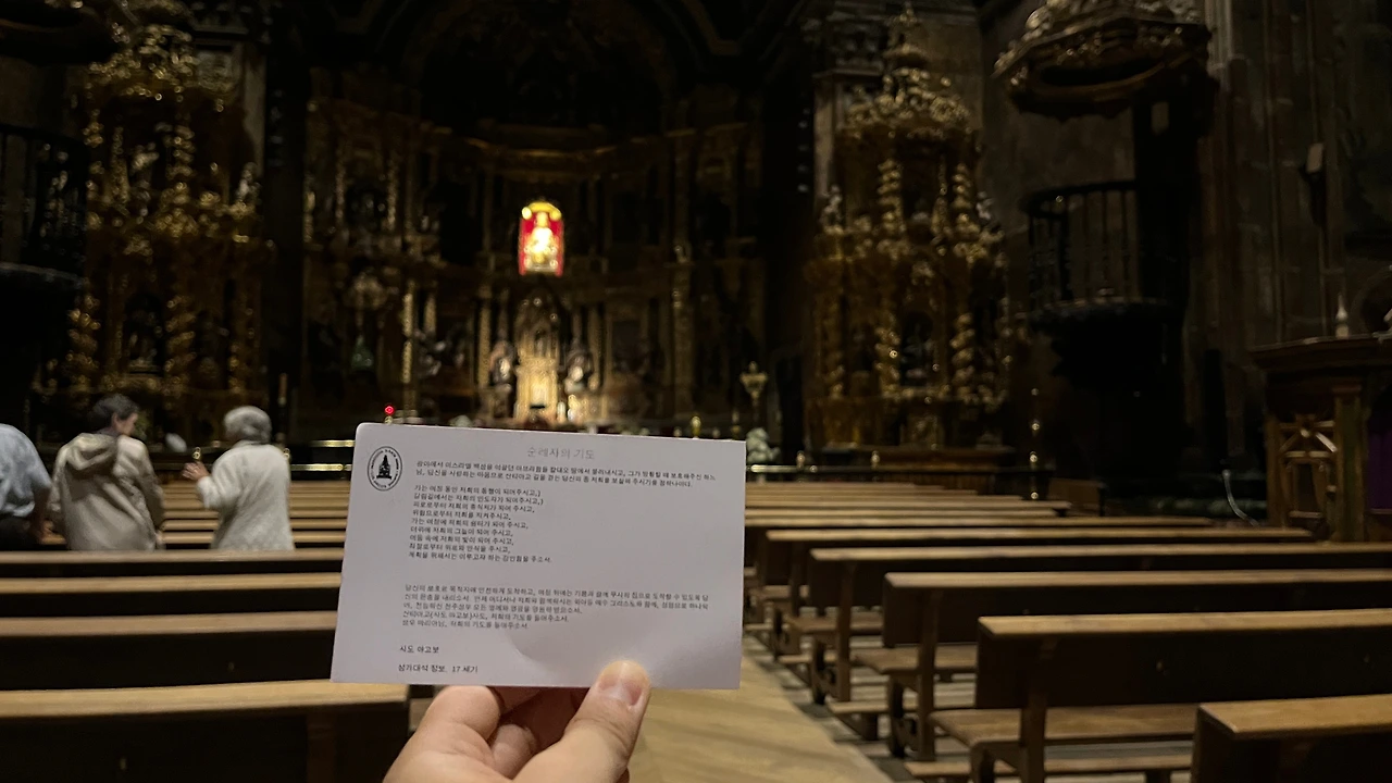 게다가 그날 저녁미사에서는 미사 후 순례자 기도 때. 한국인이라고 하니까 한국어로 된 순례자 기도문을 주셨다. 낯선 땅에서 어떻게든 걷겠다고 애쓰다가 한국어 기도문을 보니 울컥 여러 감정이 밀려와 눈물을 쏟고 말았다.