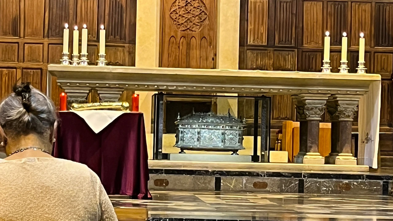 그날 미사는 대박이었다. 평일미사는 주로 소성전에서 드린다고 알고 있었는데. 평일인데 대성전에서 미사 준비를 하는 것이었다. 게다가 주교님 오시고 많은 신부님들까지. 미사 마지막에는 성인의 유해가 모셔진 함에 경배했다. 무슨 일인지, 어떤 성인의 유해인지 궁금해서 나오는 길에 성당 경호원(?)에게 물어봤다.