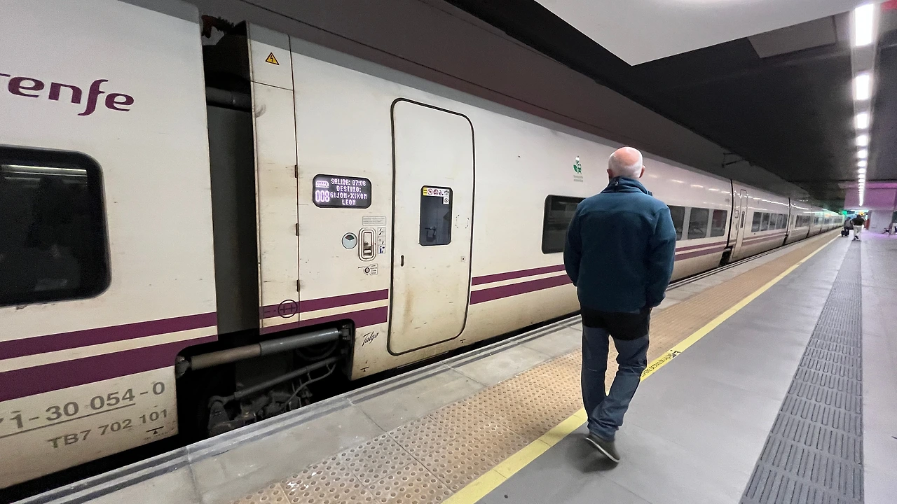 오비에도행 기차가 오고 탑승
