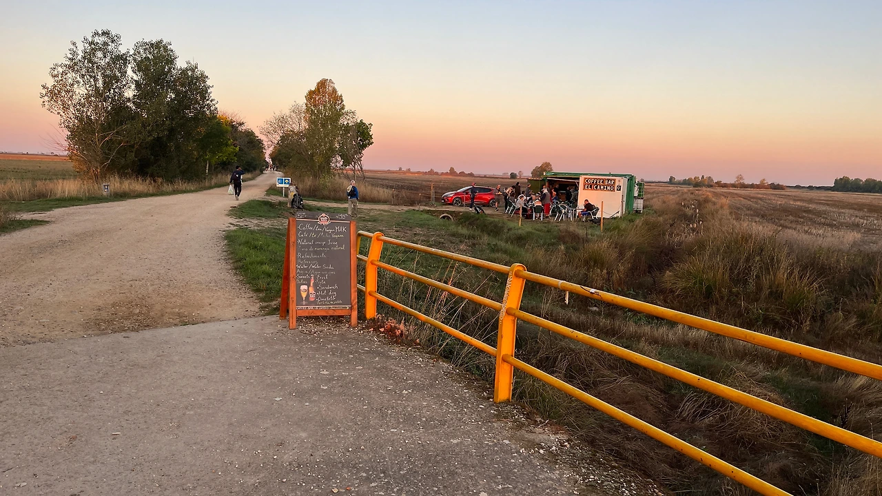 중간에 어느 마을에 다다랐을 때, 라면청년(이하 도라에몽)을 다시 만났다. 셋이 바르에 앉아 수다타임이 시작되었다. 소데님과 도라에몽님이 또래여서 그런지 더 대화가 즐거웠다. 둘다 MBTI가 E이고 나는 (당시에는) I였다. 라면청년이 도라에몽이 된 것도 얘기를 나누다 그의 배낭에 별거별거 다 들어있는 것에 대해 소데님의 표현으로 도라에몽이 되었다. 정말 한참 앉아서 놀았다. 그러다가 이 마을을 지나가는 아는 이들이 보이면 인사를 나누곤 했다. 이제 진짜 일어나야 하는데 싶은 즈음에 어느 한국인분이 바르로 다가왔다. 친화력이 좋은 둘은 자연스레 인사를 건네고 그는 우리 테이블에 합석했다. 그리고 또 한참 앉아서 수다를 나누었다.