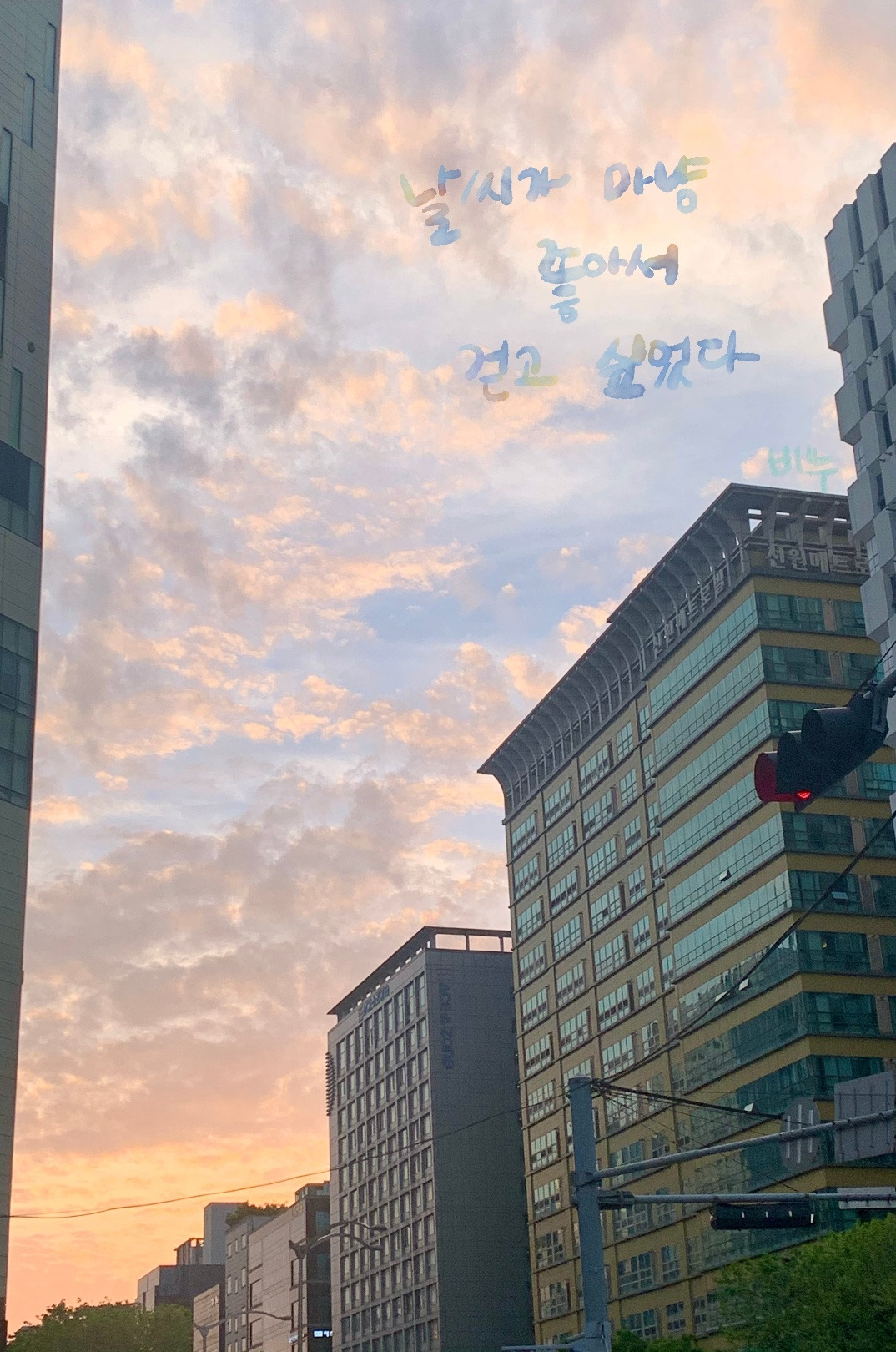 날씨가 마냥 좋아서 걷고 싶었다. 퇴근 후 고민을 하다 오늘은 걷기로 했다. 작은 가방에 지갑 하나 넣어 메고 나왔다. 걸으며 하루를 정리했다. 요즘 자주 하는 생각 중 하나는, 이걸 블로그에 써야지, 이걸 글로 남겨야지. 그러나 막상 쓸 때는 그게 무엇이었는지 생각나지 않는다. 휘발된 것은 그런대로 그리 중요하지 않거나 혹은 느낀대로 날아가고 말아도 되는 것이겠지. 하늘이 높고 맑았다. 걸으며 노을이 지는 것을 보았다. 해변이나 산 등과 같이 자연에서 보는 노을과 다르지만. 탁 트인 대로변을 걸으며 도로를 따라 뚫린 하늘길의 노을을 보는 것도 꽤 운치있다. 나름대로의 도시뷰이다. 파도가 일렁이듯 구름이 몽글거렸고, 파도가 부서지 듯 노을이 짙어졌다. 누군가에게 연락해도 좋을 하늘이라 생각하면서, 누군가를 떠올리지 못하는 나를 한심해 했다. 걸어도 아직 해는 지지 않았고 길은 이어져 있었다. 걷고 걸어 횡단보도 앞에 이르러 사이렌 요란하게 구급차가 지나갔다. 누군가의 안전을 빌며, 횡단보도를 건넜다. 사람 사는 일상과 번화가의 흥겨움이 엉켜 있는 길을 걸으며, 다시 또 누군가에게 전화 하고 싶었지만. 마찬가지로 누군가를 떠올리지 못했다. 나에게는 나를 막는 브레이크가 있다. 때로는 커피 필터 처럼 향긋하고 따뜻한 것만 내려주기도 하지만, 때로는 공항의 검색대처럼 삐비빅, 나를 막아 세운다. 내가 그렇다. 마저 길을 걸어 집으로 향했다. 어느새 사위는 어둑해졌고 하늘은 여전히 맑았다.