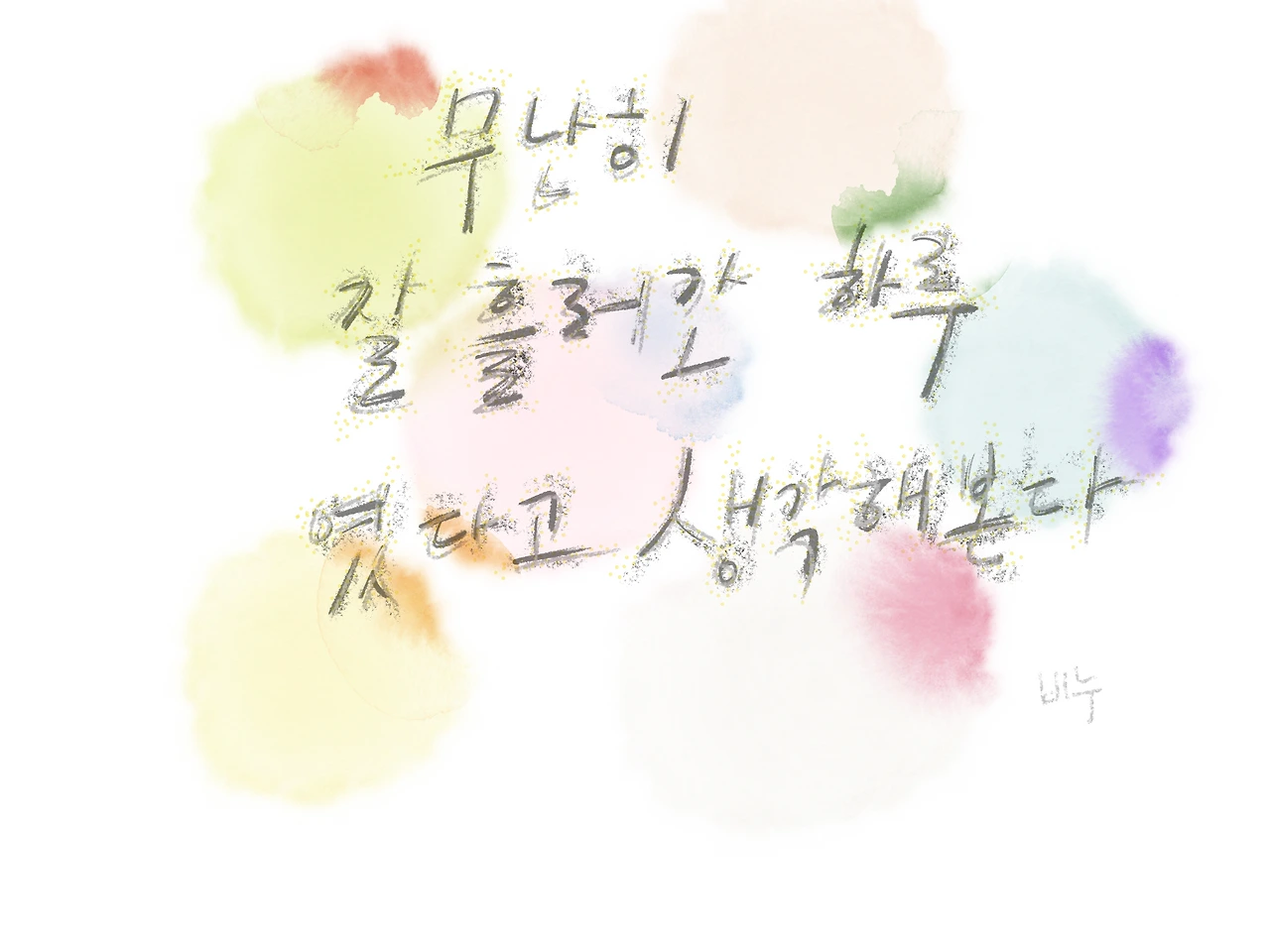 이걸 써야지 생각해 두어도 막상 글을 쓸 때면 다른 얘기로만 술술 써내려가는 날이 있다. 또 어떤 날은 미리 생각해둔 것을 잘 숙성시켜 써나가는 날도 있다. 그리고 어떤 날은 이것을 건져도, 저것을 건져도 마땅하지 않은 날도 있다. 지금이 그렇다. 분명 하루의 시간 동안 나는 다양한 자극과 생각, 느낌, 정서를 겪었는데도. 막상 글로 쓰려니 어느 것도 건져지지 않는 것이다. 어떤 날은 낚시대 하나로 월척을 낚기도 하지만. 오늘 같은 날은 최고의 낚시대를 물고기밭에 걸어 놓아도, 입질만 툭툭 올뿐인 날인 것 같다. 낚시 할 줄도 모르면서, 낚시를 예로 드는 것이 스스로 웃긴다는 생각을 해본다. 여튼, 이런 허튼 소리를 쓸 정도로 건져지는 글감이 없다. 이런 날도 있는 거지. 그리고 그런 날은 무난히 잘 흘러간 하루였다고 생각해본다.