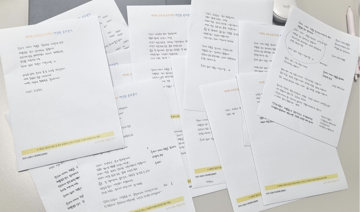 아이들과 함께 간 교보문고 카운터에 놓쳐진 교보문고 손글씨 대회 문구가 유독 눈에 들어왔다. 책을 결제하며 한 장 뽑아 책 사이에 잘 꽂아두고, 그날 밤 꼼꼼히 읽어보았다. 그리고 다이어리 달력을 펼쳐 적었다. 7월 3일 예선 응모, 7월 21일 입선 수상자 발표.