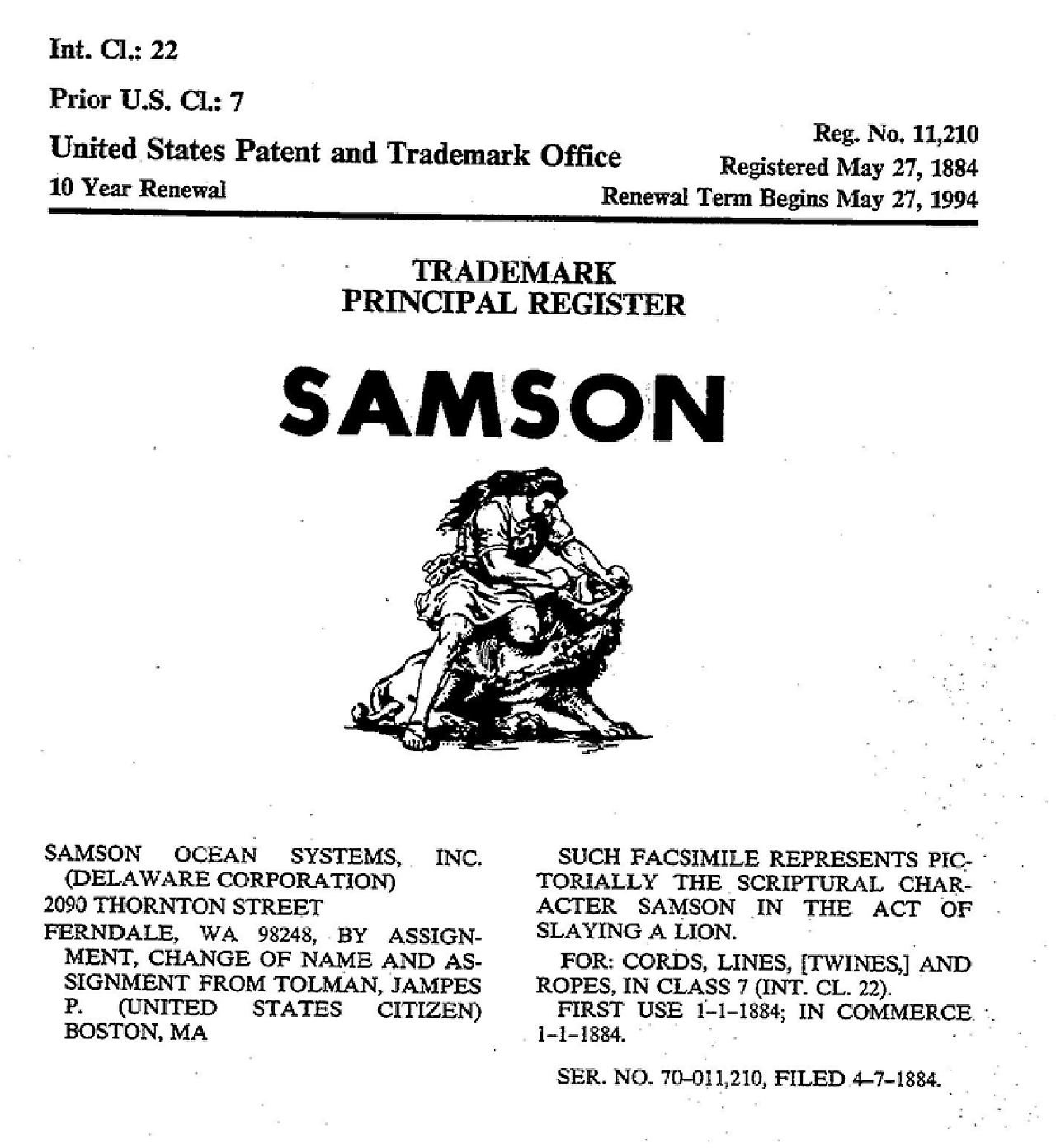 (그림 6. 미국의 밧줄브랜드, Samson Rope Technology의 1884년 출원한 상표)