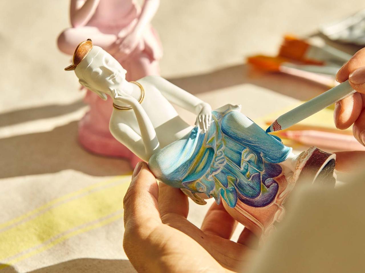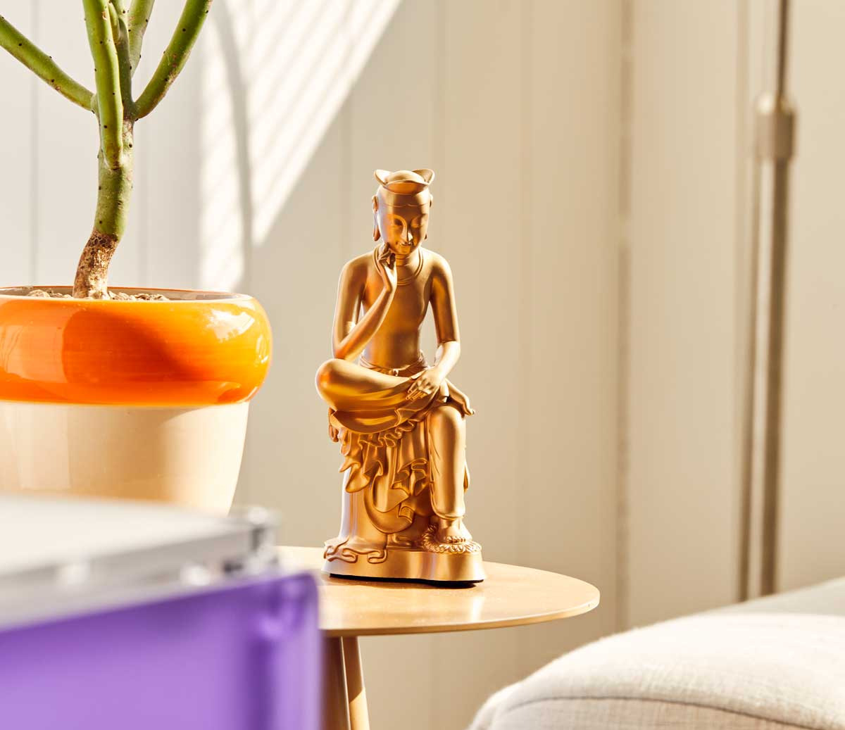 '사유의 방'의 특징 중 하나는 바로 굿즈입니다. 반가사유상을 모티브로 한 다채로운 문화상품을 선보이며 반가사유상의 가치를 일상 속으로 가져온 것인데요. 반가사유상을 재해석한 미니어처, 스마트톡, 열쇠고리 등 감각적인 디자인의 굿즈로 많은 사랑을 받았습니다. 또한 참여형 상품인 ‘내가 그리는 반가사유상’ 컬러링 키트는 소비자가 직접 채색하여 작품과 교감할 수 있는 경험을 제공했습니다.