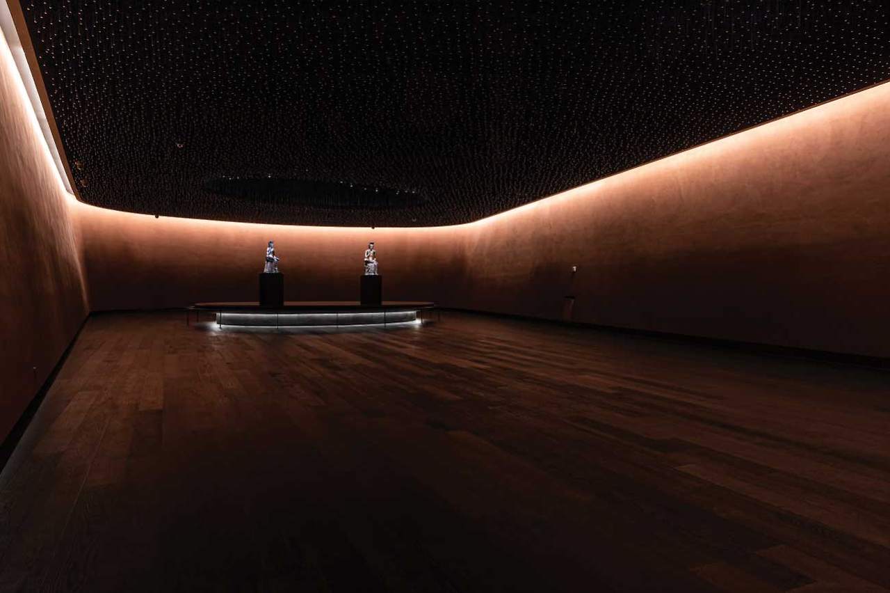 사유의 방은 그리 좁지도 넓지도 않은 공간에 두 점의 불상을 배치한 특징을 가지고 있습니다. 이렇게 설계한 이유는 어느 곳을 쳐다봐도 반가사유상에 시선이 닿도록 만든 공간 전략인데요. 온전히 반가사유상을 향유할 수 있게 공간을 구성한 것입니다. 또한 어둡고 좁은 복도에 끝에 두어 극적인 대비감을 주는데요. 이는 가치를 잘 알지 못했던 이들에게 가치를 제안하는 것을 넘어서, 소유 하고 싶은 욕구마저 불러일으킵니다.