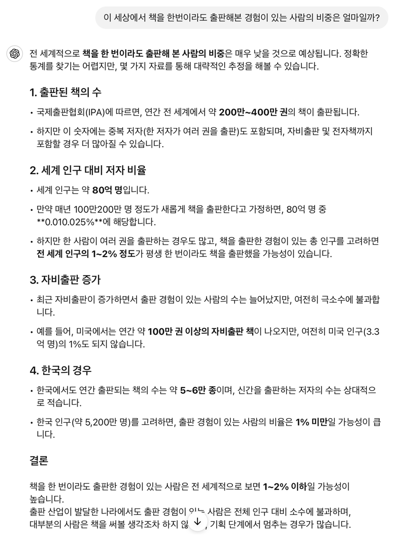 그렇다고 한 사람이 인생에서 한 권의 책을 출판하는 것이 쉽냐 하면 그것은 아닐 것이다. 주변에 책을 내신 분이 두 분 계신데, 한 분은 베스트셀러 작가이시고 한 분은 화제의 신간 매대에 올라올 정도로 두 분 다 나름의 인지도가 있는 분이다. 사석에서 두 분이 글 쓰는 과정을 들은 적이 있다. 한 분은 글을 쓰려고 주말에 일부러 강릉까지 가서 외부와 차단하고 집필을 하신다고 하셨다. 다른 한 분은 글이 너무 안 써져서 힘들어하셨는데, 유럽으로 여행을 다녀와 본격적으로 써야겠다고 하더니 기어코 작년에 책을 완성하여 출판을 하셨다. 여하튼 두 분 다 존경스럽고 대단하면서도, 확실히 글을 쓰고 책까지 낸다는 것은 보통 일이 아니다. 이 세상에 자신의 이름으로 책을 내 본 사람이 얼마나 있을까?