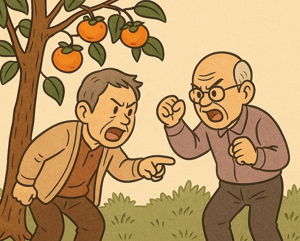 “옆집 할배가 내 감을 훔쳐 가다가 걸렸어!! 감나무 가지도 같이 부러뜨린 걸 내 직접 잡아 왔다고 아이고 살다 살다 친구네 감을 훔치는 할배는 내 생전 처음 보네!!”