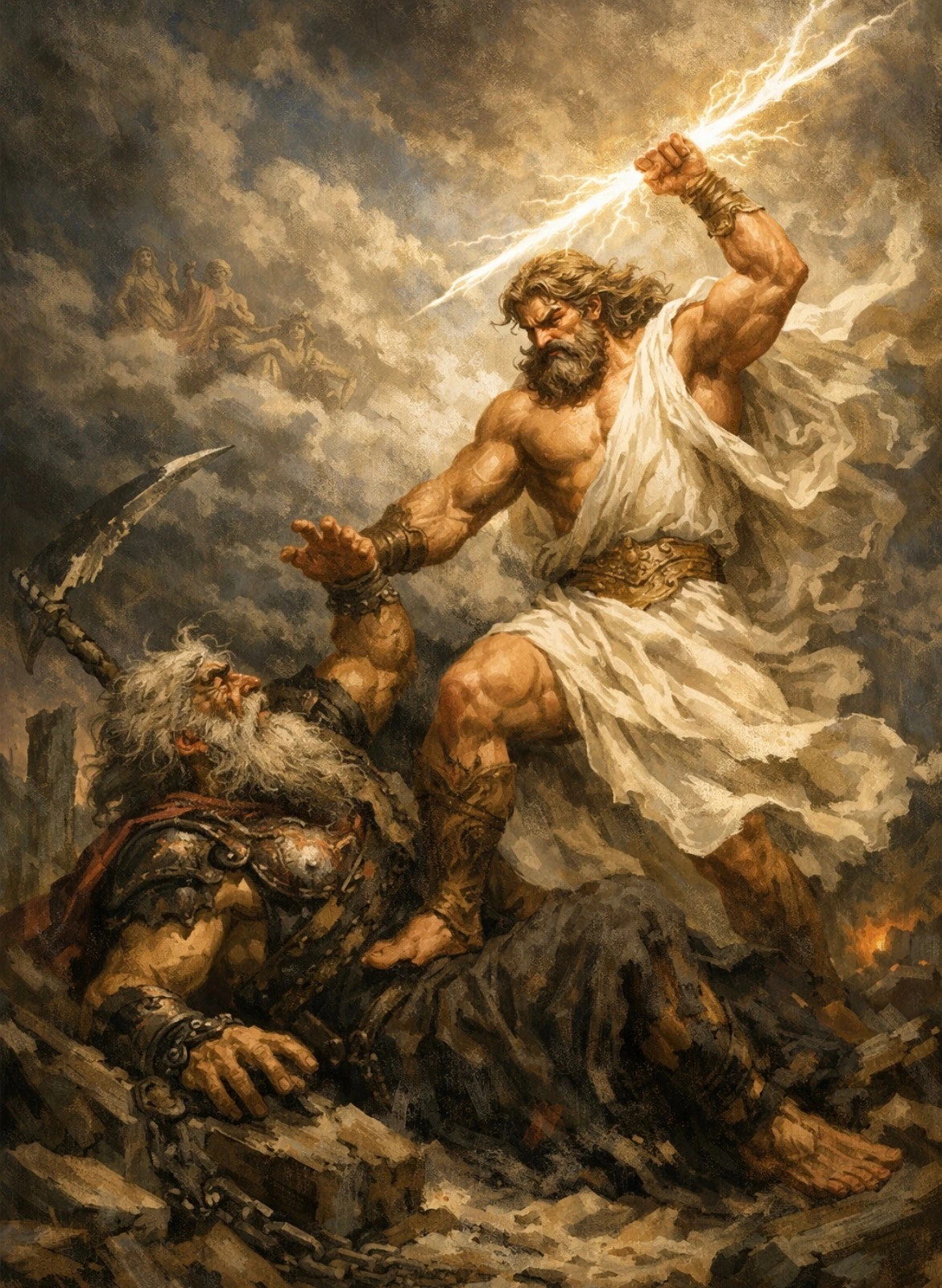 대지의 여신 가이아와 하늘의 신 우라노스 사이에는 태어난 뛰어난 대장장이 아들인 퀴쿨롭스와 강력한 힘을 가진 헤카톤케이레스라는 아들들이 있었는데, 아버지인 우라노스는 그들의 능력을 두려워한 나머지 깊은 구덩이인 타르타로스에 가둬버린다.