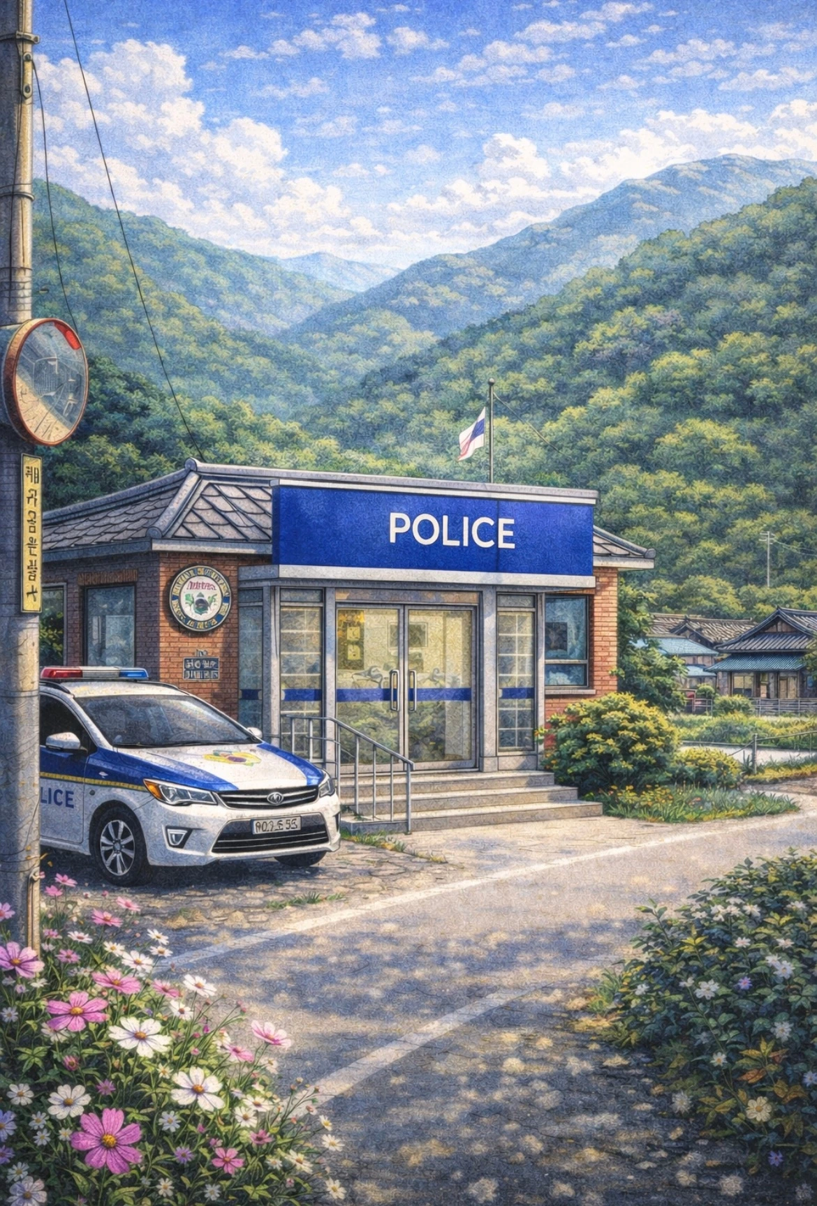 그래도 시골길을 지나다 보면 그 어디에도 꼭 하나는 있는 파출소. 건물은 작고 검소하다. 물론 순찰차 하나 둘은 꼭 세워져 있다.