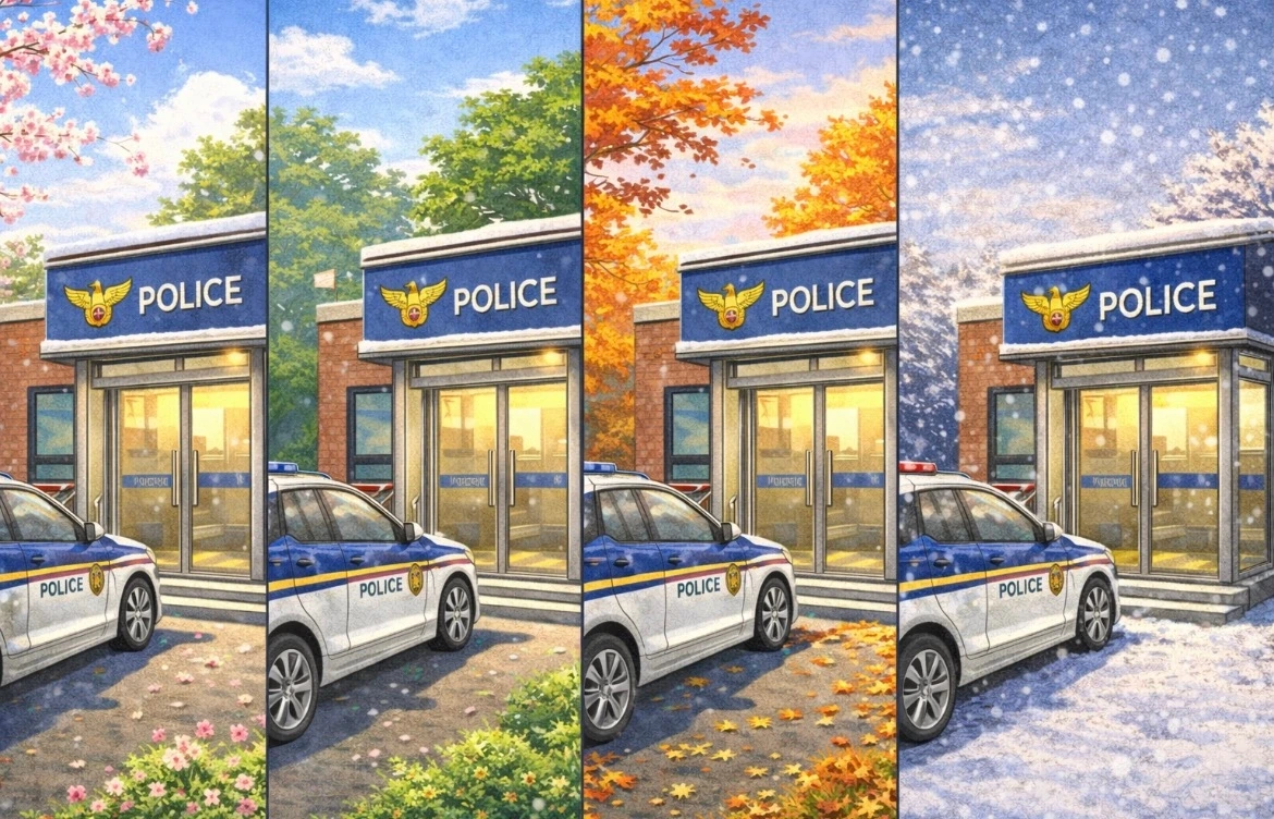 심지어 이 근무 체계에 가장 치명적인 위험은 다름 아닌 사림이다. 이론상으로 어느 날짜여도 아침에 하든 저녁에 하든 365일 내내 같은 팀원과 근무를 해야 했다. 주말이나 휴일에는 팀원들과 헤어지던 수사과와는 너무나도 다른 방식에 걱정을 한 아름 들고 눈길을 해치며 파출소 문 앞에 뻘쭘 거리던 첫 만남이 생생하다.