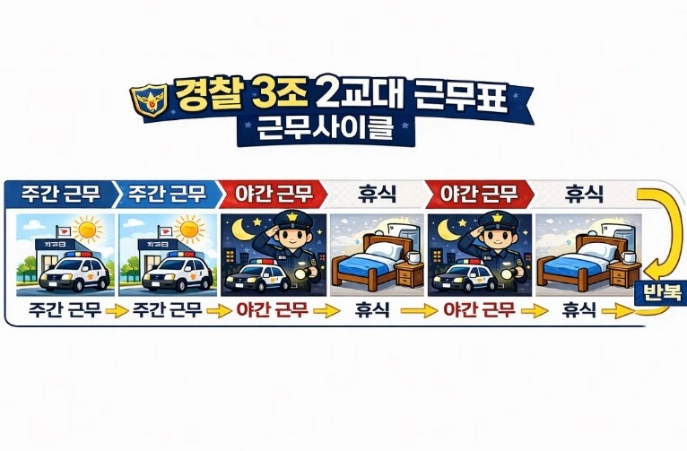 주간 근무 3번 후 야간근무 3번을 무한으로 반복하는 3개의 조가 2교대로 근무체계는 언뜻 보면 간단해 보인다. 그러나 왜 경찰 선배들이 3조 2교대만큼은 하지 말라고 했는지 경험해 보니 알 것 같았다.