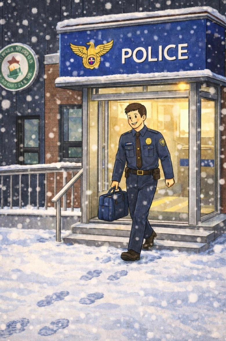 내가 처음 파출소에 왔을 때를 기념이라도 하듯 눈이 내리고 있었다. 1년간 입고 쓰던 물건들을 백에 넣어 팀원분들과 인사를 한 뒤 마지막으로 지역 생활을 버티게 해 준 순찰차를 한번 쓰다듬고 파출소를 떠났다.