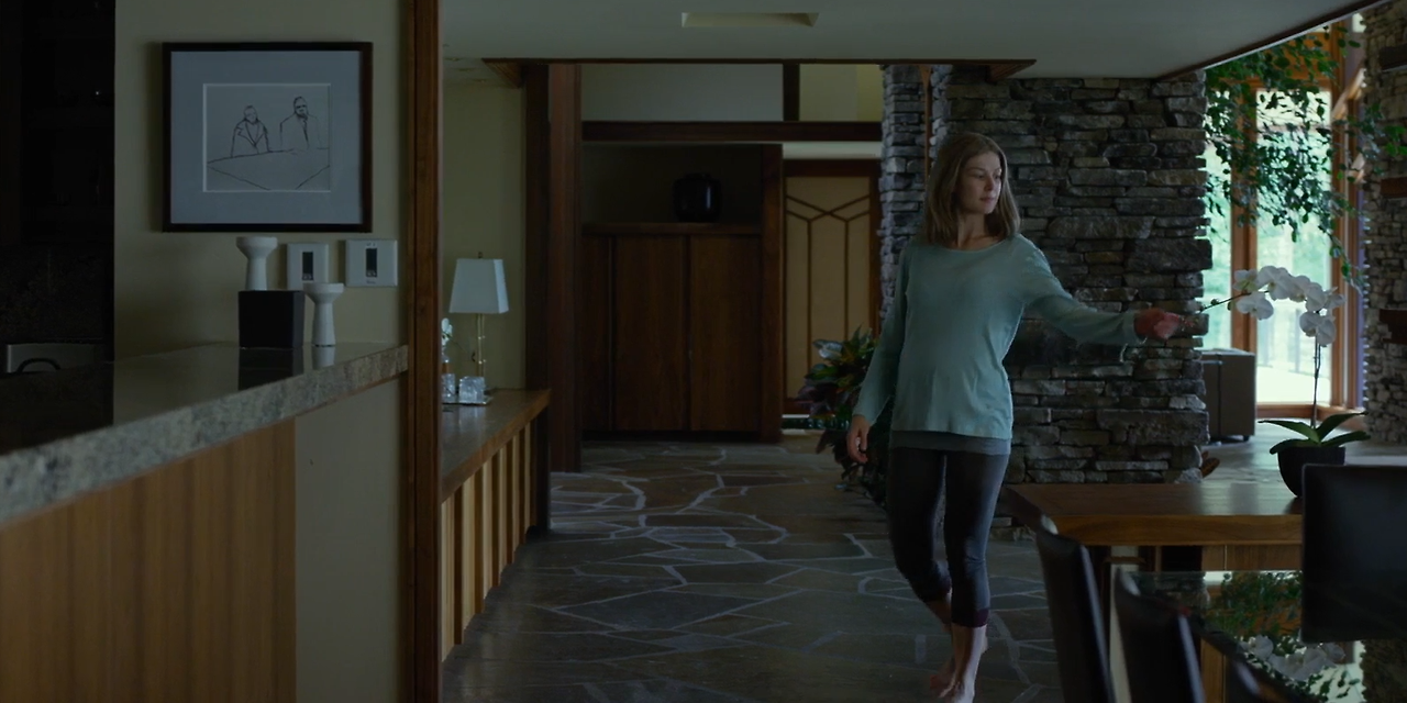 영화에서 닉이 에이미의 고등학교 때 남자 친구인 데시를 찾아가는 장면이 나옵니다. 소설에선 집에 들어가서 얘기를 나누지만 영화에선 밖에서 얘기하다 박대를 당합니다. 사실 저 집에는 데시와 그녀의 어머니가 같이 살고 있었습니다. 그렇기에 나중에 데시가 에이미를 숨겨줄 때 자신의 집이 아닌 별장에 데려간 것이죠.