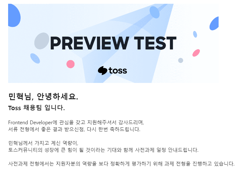 2주 전, 나는 토스라는 회사에 입사 지원 서류를 넣었다.