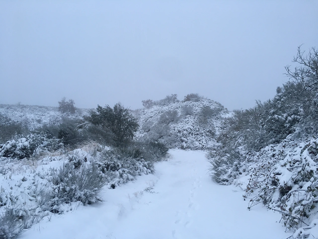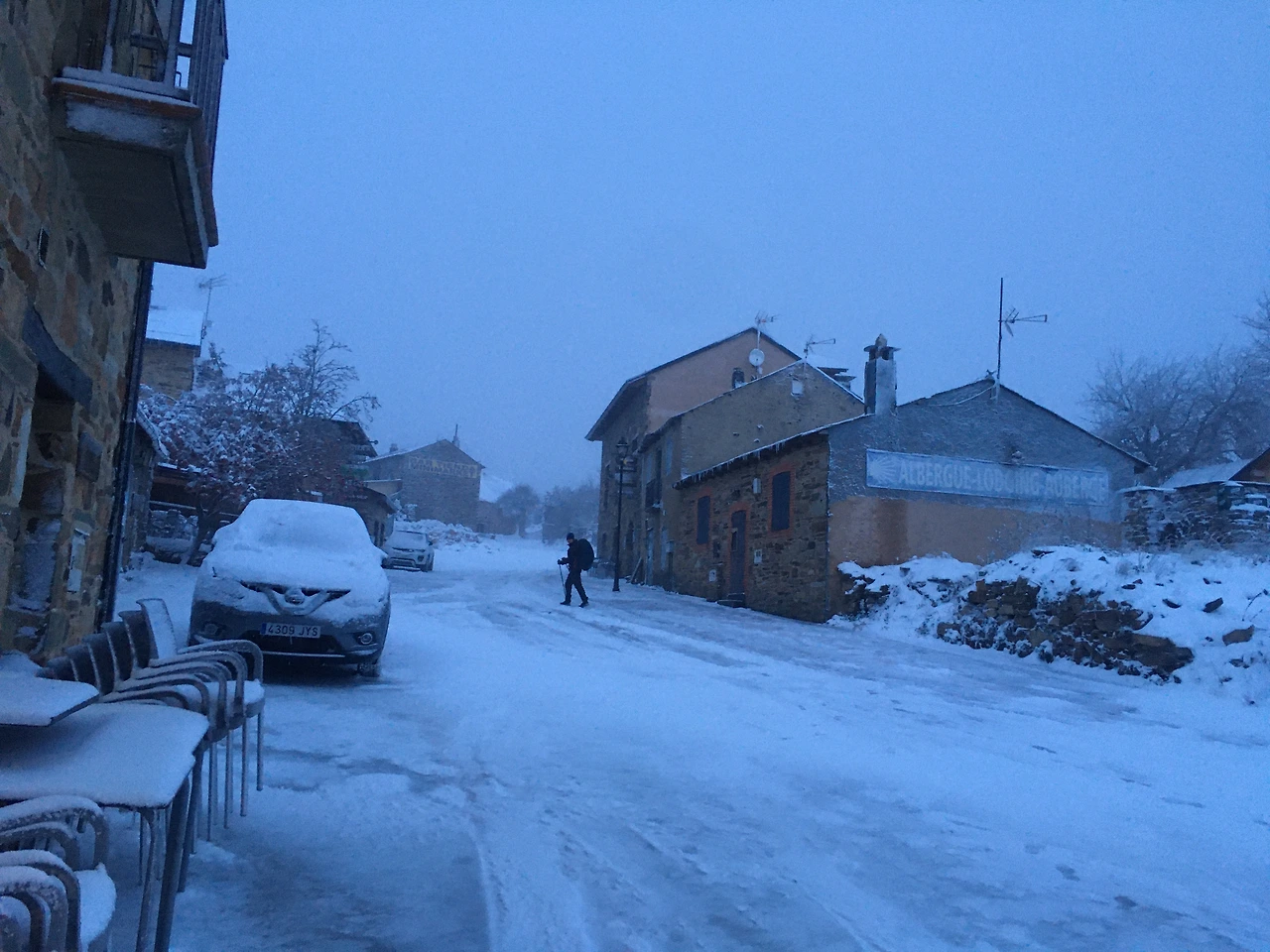 눈보라 치는 언덕에서는 몸을 피할 곳 하나 없었기에 카를로의 긴 기도를 마지막으로 다시 길에 올랐다. 그 사이에 더 쌓여 오른 눈이 푹푹 찔리니 스틱의 이음매 부분이 힘없이 쑤욱, 하고 빠지더니 고장 나버렸다. 고깟 스틱 값 좀 깎아줬다고 아저씨를 들볶던 여인의 눈빛이 떠오른다. 잘났어 정말. 산 중턱에서 고칠 수 있는 뾰족한 수도 없는 노릇이라, 물집용 테이프로 둘둘 감아 임시방편을 마련해 놓고 조심, 또 조심하며 걸었다. 경사가 완만해지는가 싶더니 곧 평지를 따라 내리막이 이어졌다. 고도 1300m 지점인가부터 눈이 녹기 시작하고 날도 완연한 봄이었다. 하루 사이 여러 계절이라니, 신기하기도 하지. El Acebo에서 쉬어가며 점심으로 보카디요와 카페라테(café con reche)를 먹었다. 바게트 안에 베이컨과 치즈 외에 들어있는 것도 없는데 시장이 반찬이라 했던가, 그만큼 맛이 좋을 수가 없다.