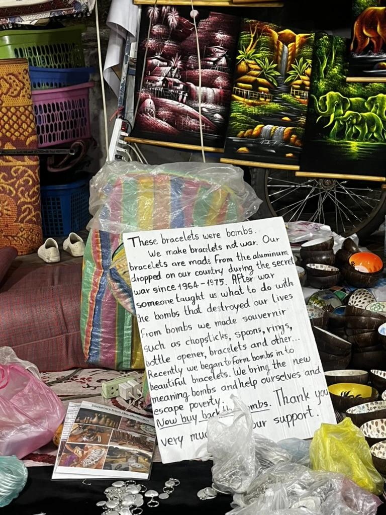 'Our bracelets are made from the aluminum dropped on our country during the secret war since 1964 - 1975.'