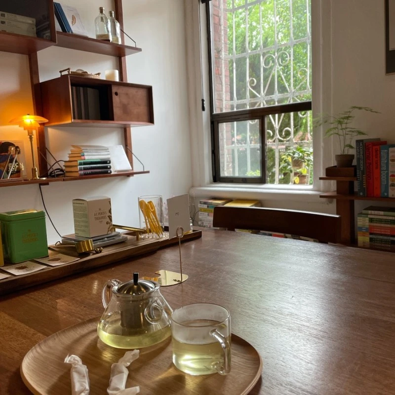 우선 웰컴 티를 마시며, 보고 싶었던 인테리어 잡지를 펼쳐봤다. 공간이 위치한 정동, 그리고 근대를 상징하는 건물에서 영감을 받은 큐레이션이 어떻게 짜여 있는지 안내문도 찬찬히 읽어내려 본다. 근처 학교에서 들리는 아이들의 웃음소리가 귓가에, 봄의 계절감을 담은 인센스 향은 코끝에 맴돈다. 구하기 힘든 브랜드 북을 꺼내 보고, 어색한 타자기를 꾹꾹 눌러보며 온전히 이 공간이 주는 기운을 느꼈다.