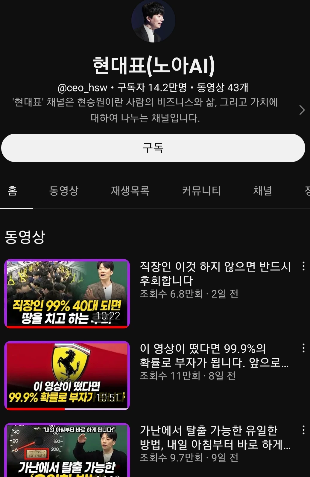 유투버 현대표님 채널에서는 이러한 노력을 최소 5년만 해보라고 한다. 그만큼 끈기와 열정은 배신을 하지 않는다. 수많은 동기부여 영상을 올리는 현대표는 1500억 자산가가 되어 경제적자유를 이루었고, 의식을 깨우쳐주는 강의를 많이 업로드 하여준다. 그도 이러한 구독과 시청에서 오는 광고수익으로 지속되는 부의 유입을 이루고 있다.
