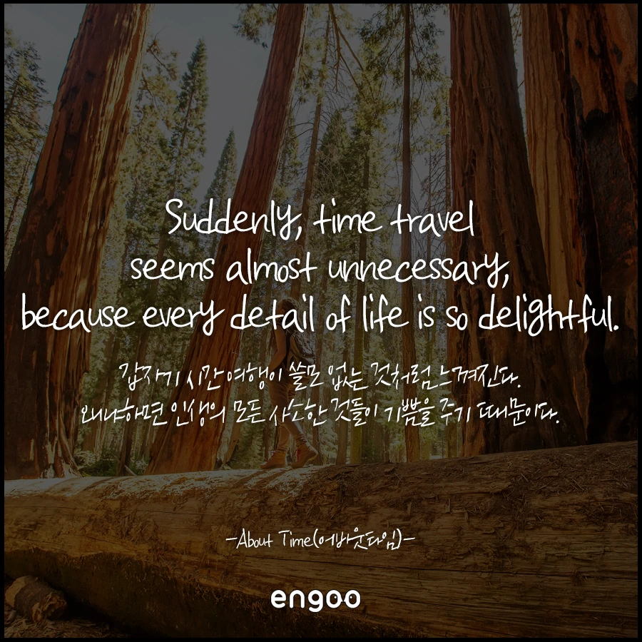 모두에게 똑같이 주어지는 시간이 훈련에 따라 달 라질 수 있다는 것을 배워야 한다. 제대로 된 Time Travel은 시간이 늘 부족해하면서도, 그 시간을 가장 잘 활용하는 묘미에 있다. 그 훈련은 스스로의 절실함과 의지, 노력으로 날카로워질 수 있다.
