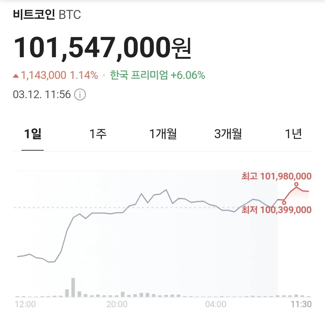 비트코인이 1억을 돌파했다.