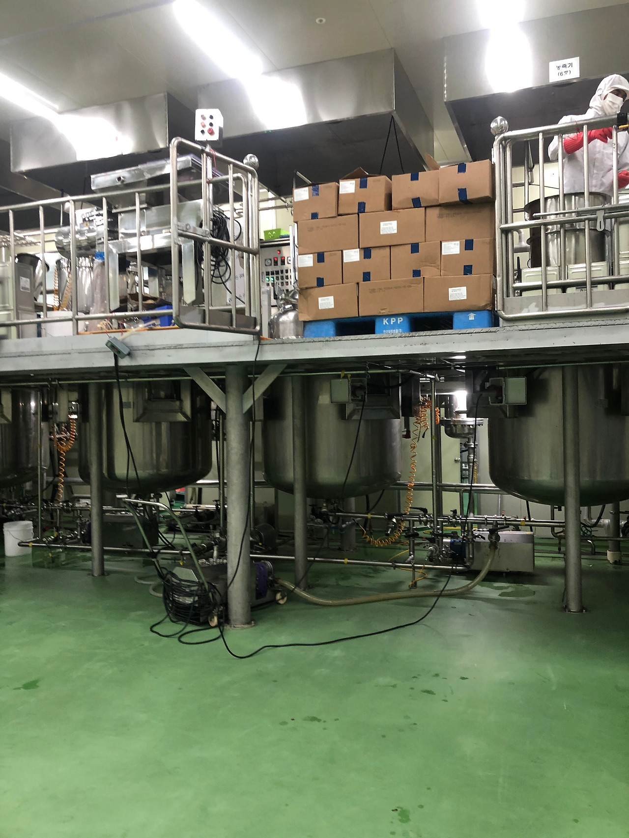 운영 관리적인 측면에서도 3일에 한번 방문하여 기본적인 기기 위생관리 및 환경 청소를 수행하고 그 외에도 정기적으로 기존 식품 공정에서의 위생 방침을 그대로 적용한 CIP(Cleaning In Place) 작업과 배관 교체 작업 또한 진행합니다.