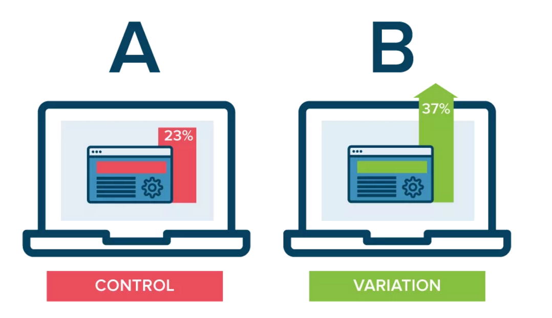 두 가지 시안을 론칭해보고 어떤 디자인 안이 전환율이 높은지 , 이탈률이 낮은 지를 측정하고 성과를 파악해나가는 방법입니다. 빨리 내보내고 검증을 해보는 것이 이 방법론의 주안점으로, A와 B 중 어떤 것이 나은가? B가 믿을만한 정도인가? 와 간단한 것들을 확인할 수 있습니다. 의사결정에 도움을 주는데 보통 2개 이상의 안을 선택하기 위해 사용하며 페이지의 큰 변화를 주로 테스팅하며 페이지에 요소를 제거하거나 더해야 하는 경우에 효과적이죠.