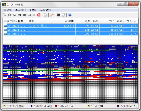 컴퓨터에는 ‘디스크 조각모음’ 기능이 있다. 프로그램 설치와 삭제를 반복하다 보면, 하드디스크 공간에 데이터가 흩뿌려져 있게 된다. 이게 심해지면 컴퓨터 속도는 느려진다.