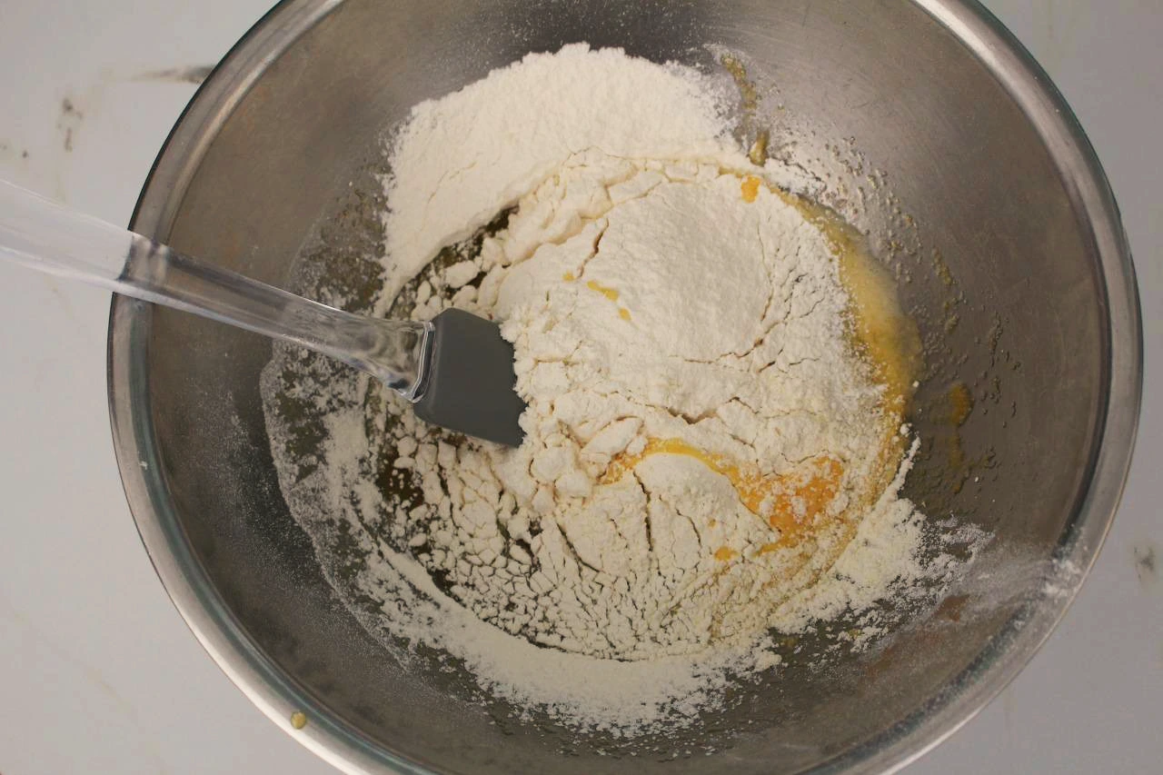 3. 체 친 가루류들을 1에 넣고 주걱으로 섞어준다.