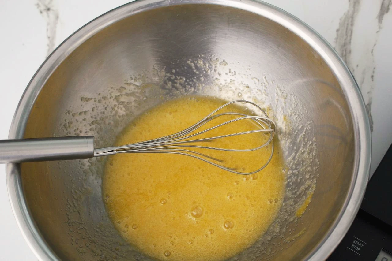 1. 게란, 설탕, 꿀, 소금, 바닐라 익스트렉을 넣고 휘퍼로 골고루 섞어준다.