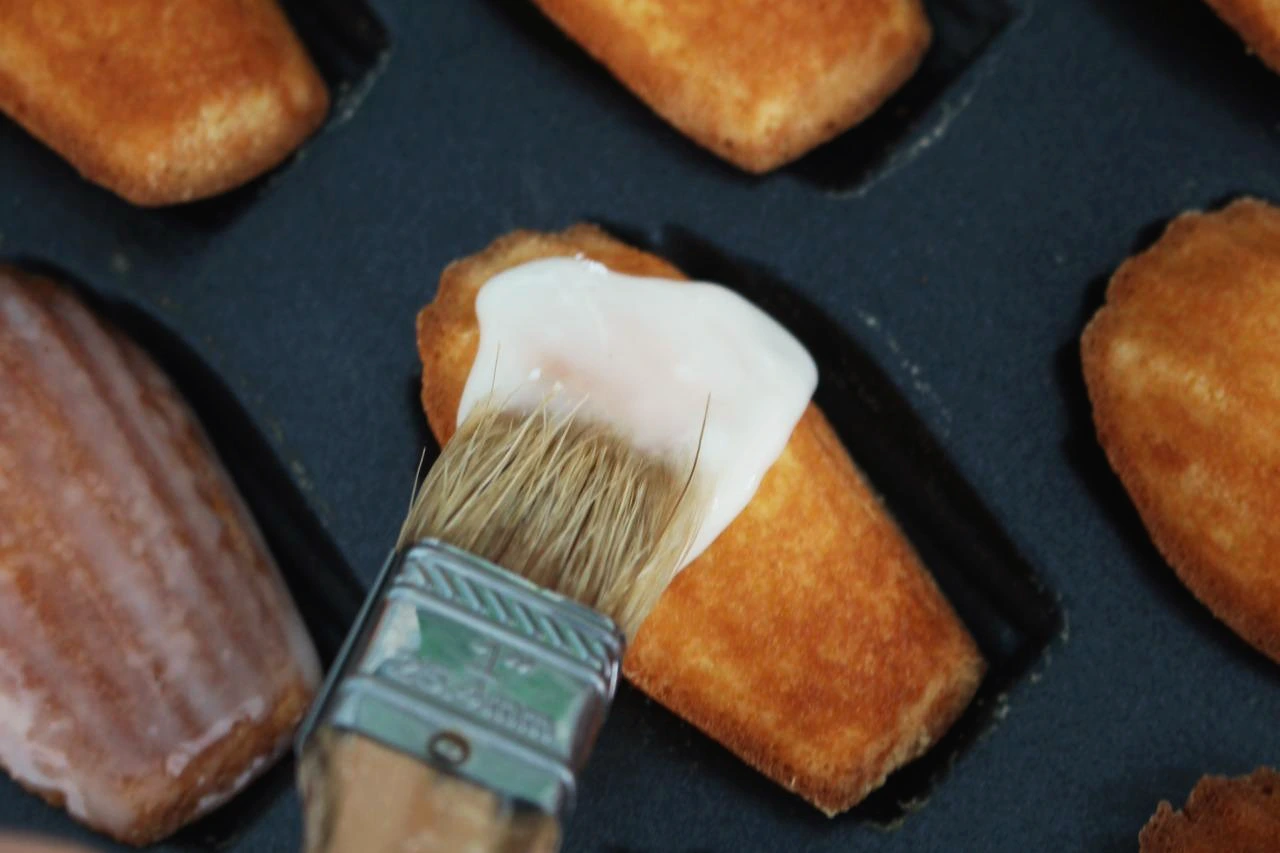 9. 체 친 슈가파우더에 유자청과 우유를 넣고 섞어 준 후 충분히 식혀준 마들렌에 발라준다.