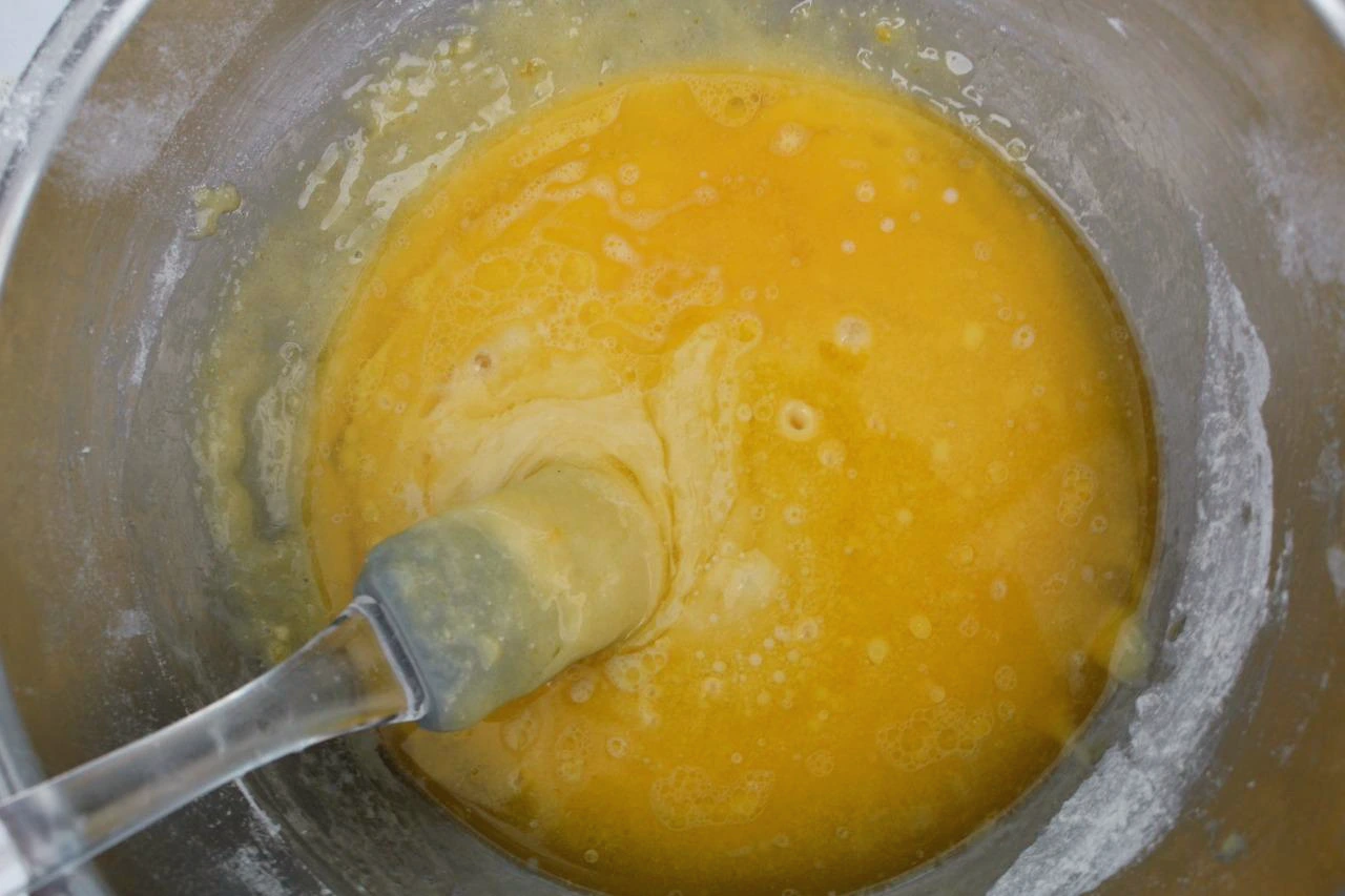 이때 휘퍼로 반죽을 너무 많이 섞거나 빨리 섞으면 거품이 날 수 있어 천천히 부드럽게 섞어준다.
