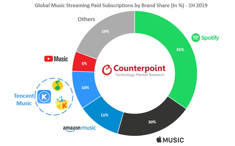 먼저 스포티파이(Spotify)를 간략히 설명드리면, 2008년 스웨덴에서 시작된 음악 스트리밍 서비스로서 현재 178개국에서 서비스 중이며, 전 세계 유료 구독자는 1억 7천만 명이 넘어 2020년 1분기 기준 전 세계 점유율 1등(35%)을 차지하고 있습니다.