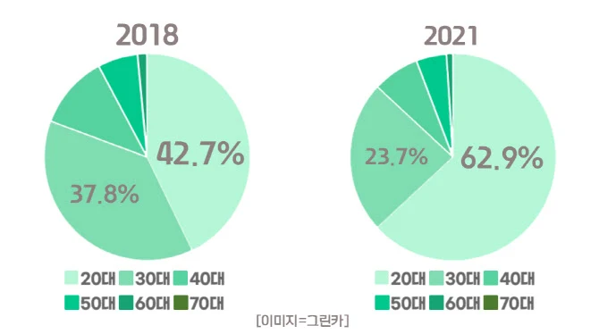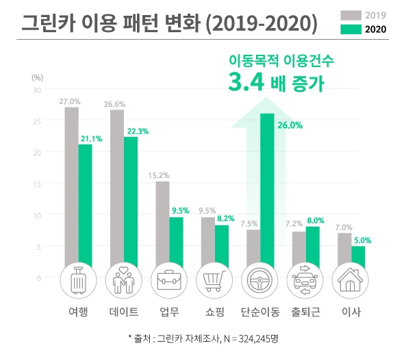 특정 상황에서 차량이 없거나 아예 차량을 소유하지 않는 사람일 가능성이 큽니다. 2021년 9월 그린카 데이터랩 통계(위 통계자료)에 따르면 21년 8월 이용자 중 20대가 62.9%로 2018년 42.7%보다 20.2% 증가했고, 20대 이용자도 608만 명으로 2018년보다 322만 명이 증가했습니다. 또한 2019년 대비 2020년 가장 크게 증가한 그린카 이용패턴은 '단순이동'이었습니다. 여행, 데이트, 쇼핑이 아닌 도착하기 위한 수단으로써 사용이 크게 증가한 겁니다.