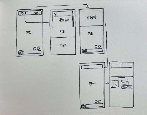 아래 [그림2]에서 문제 지점은 랜딩페이지에서 '검색 창 - 시간설정 - 차량선택'과 '맵 마커 간 결과 조회'입니다. 개선작업이 진행될 부분은 [랜딩페이지] [검색창] [추천 검색어] [시간설정]입니다.