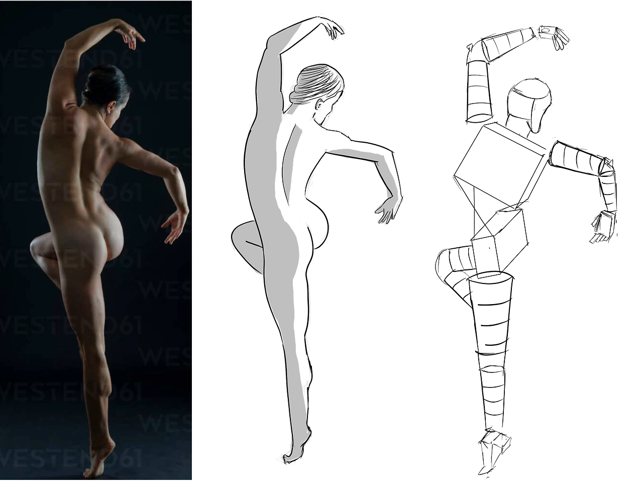 그림을 처음 배우던 시절이 생각났다. 나는 누드화를 그려본 경험이 있다. 만화를 배우던 시절, 매주 누드 사진을 5장 골라 과제를 했다. 그림 초보는 인체에 옷이라는 것이 걸쳐져 있으면 인체의 흐름 파악을 할 수 없기에, 모델은 반드시 누드여야만 한다. 먼저 그림을 보고 그에 맞는 도형화를 그리며 인체 동작을 단순화 하는 법을 배운다. 그 뼈대에 근육을 붙이며 그림을 위한 해부학을 배웠다. 물론 실제 모델을 그려본 적은 없다.