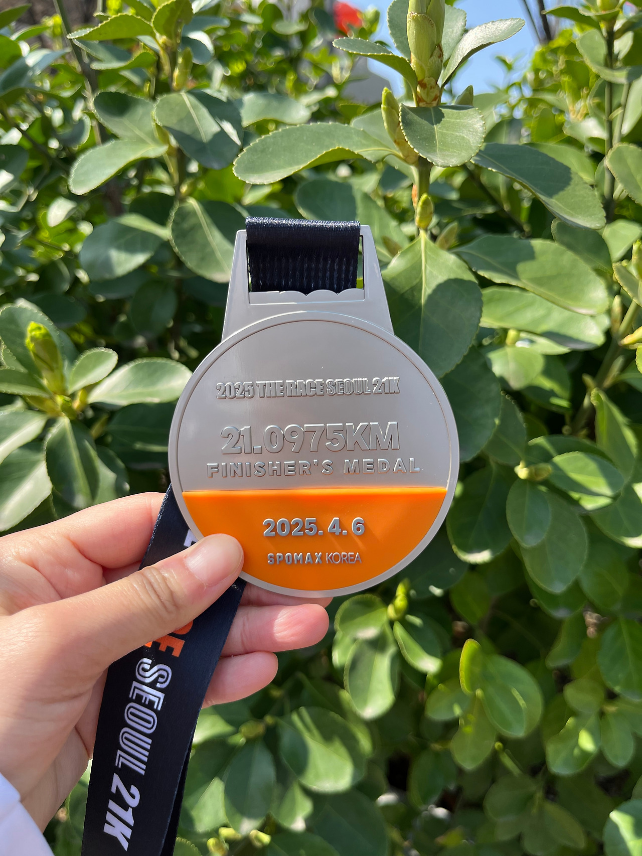 그런데도 대회 기록은 생각보다 잘 나왔다. ‘더 레이스 서울 21K’ 기록은 지난 2월 말에 참여한 ‘2025 챌린지 레이스’ 하프 기록보다 약 10분을 단축한, 2시간 19분 55초였다. 대회를 앞두고 완벽한 준비를 하지 못했지만 좋은 결과가 나와서 뿌듯했다. 그리고 혼자 참여한 마라톤에서 좋은 기록이 나와서 더욱 기뻤다. 사실 혼자 참여하는 마라톤은 단순히 ‘혼자’라는 말로는 다 담기지 않는다. 대회 당일 알람을 끄고 다시 눈을 뜨는 것부터, 누구의 응원 없이 스스로를 밀어붙이는 모든 순간이 의지의 연속이기 때문이다. 그리고 그 결실을 안고 결승선을 통과할 때 느끼는 뿌듯함은 말로 설명하기 어렵다. 그래서 그 고요한 싸움을 견뎌내면 스스로 조금 더 단단해졌음을 느끼게 된다.