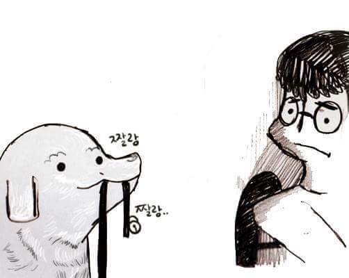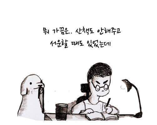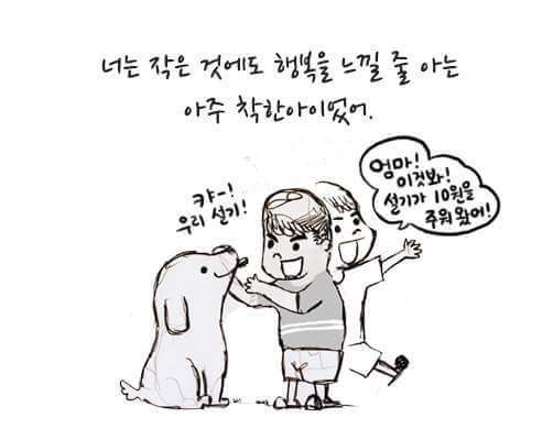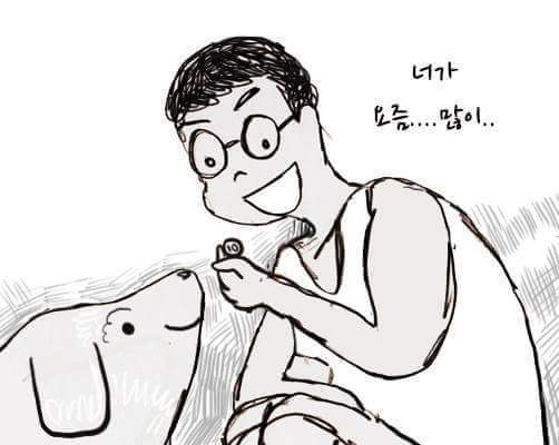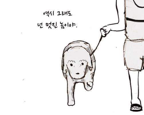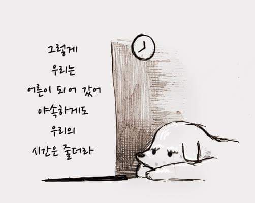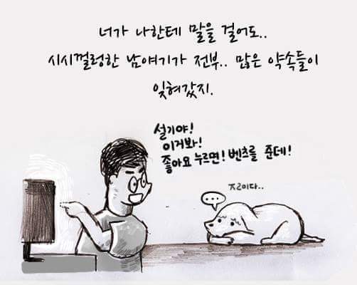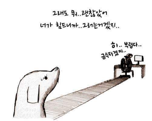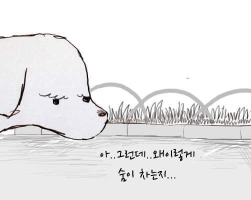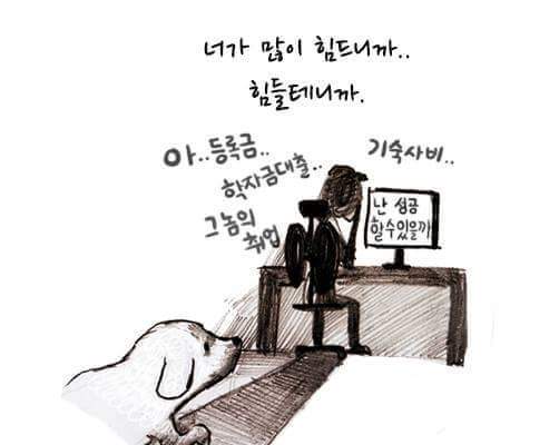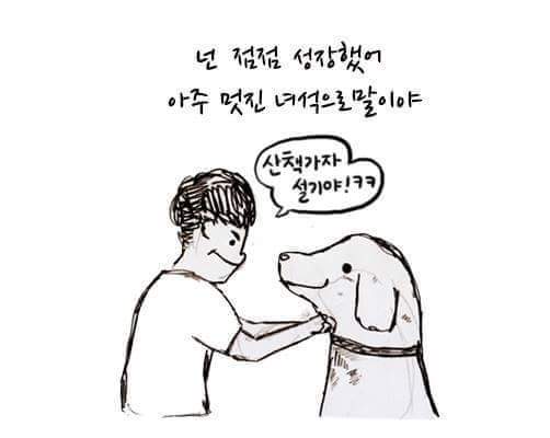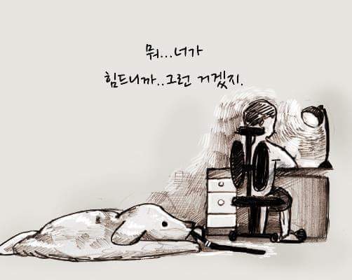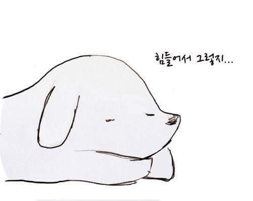 하지만 강아지를 보면 힘이 난답니다