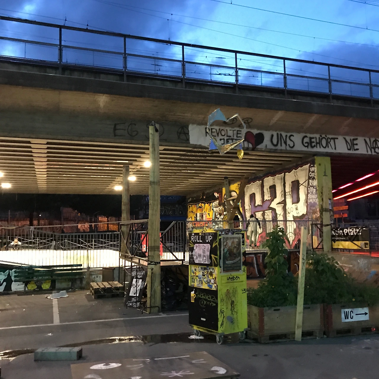 여행의 순간을 상상으로 그려볼 때, 심장을 조금 더 빨리 뛰게 하는 장면이 몇 가지 있다. 기차의 창밖으로 흐르는 풍경을 넋 놓고 바라보는 순간, 계획 없이 닿은 도시에서 자유롭게 걸어 다니는 순간, 길에서 마주친 낯선 이와 따뜻한 대화를 나누는 순간. 스위스의 수도 베른은 이런 나의 상상이 고스란히 실현된 곳이었다. 오전에 융프라우에 다녀온 후, 나와 내 친구들은 숙소로 바로 들어가기 아쉬운 마음에 인터라켄역에서 기차로 가볍게 다녀올 수 있는 베른으로 향했다. 차창 너머로는 주홍 구름이 어느덧 군청색으로 물들고 있었다. 목적지에 곧 도착한다는 안내방송을 듣고, 나는 여전히 내 시선을 창밖에 두고 있었다. 기다란 다리를 건넌 직후 곧바로 그라피티가 잔뜩 그려진 공터에 사람들이 모여 있는 것을 보았다. 찰나의 목격이었으나, 저곳은 뭔가 범상치 않은 곳이라는 확신이 들었다. 재밌는 일이 일어나겠다는 생각이 들었고, 맞은편에 앉은 친구와 눈이 마주쳤다. 야속하게도 기차는 금세 눈앞의 장면을 바꿔버렸으나 우리는 내리자마자 외쳤다. 그곳을 찾아야 한다!