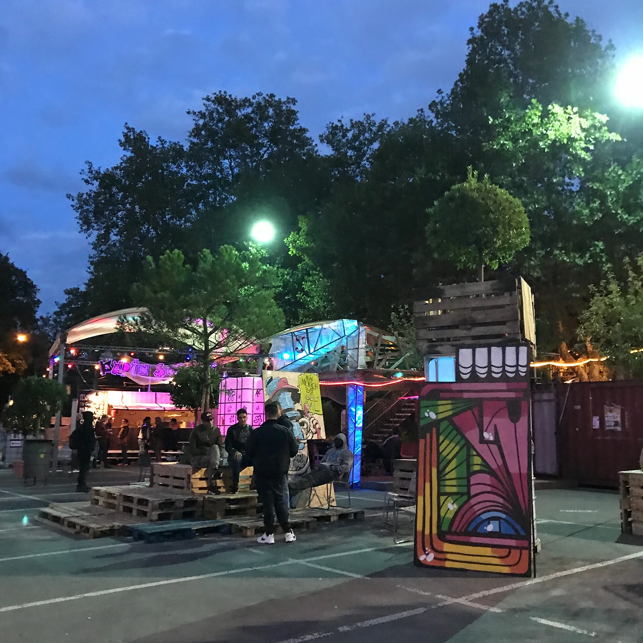 살펴보니 알 수 없는 그라피티들 사이로 몇몇 사람들이 스케이트 보드를 타고 있었고, 반대쪽으로 고개를 돌리자 무대에서 공연을 준비하고 있는 밴드가 보였다. 그리고 그 앞으로는 삼삼오오 모여 맥주를 마시며 웃고 떠드는 사람들도 있었다. 이곳은 정녕 로컬들이 모이는 장소였다. 우리는 무대 쪽으로 가서 공연을 보기 위해 서 있었다. 빨간 불빛에 둘러싸인 밴드가 공연을 시작하자 분위기는 한층 더 달아올랐다. 잠시 후 세월을 구겨낸 듯한 가방을 멘 한 중년의 남자가 말을 걸었다.