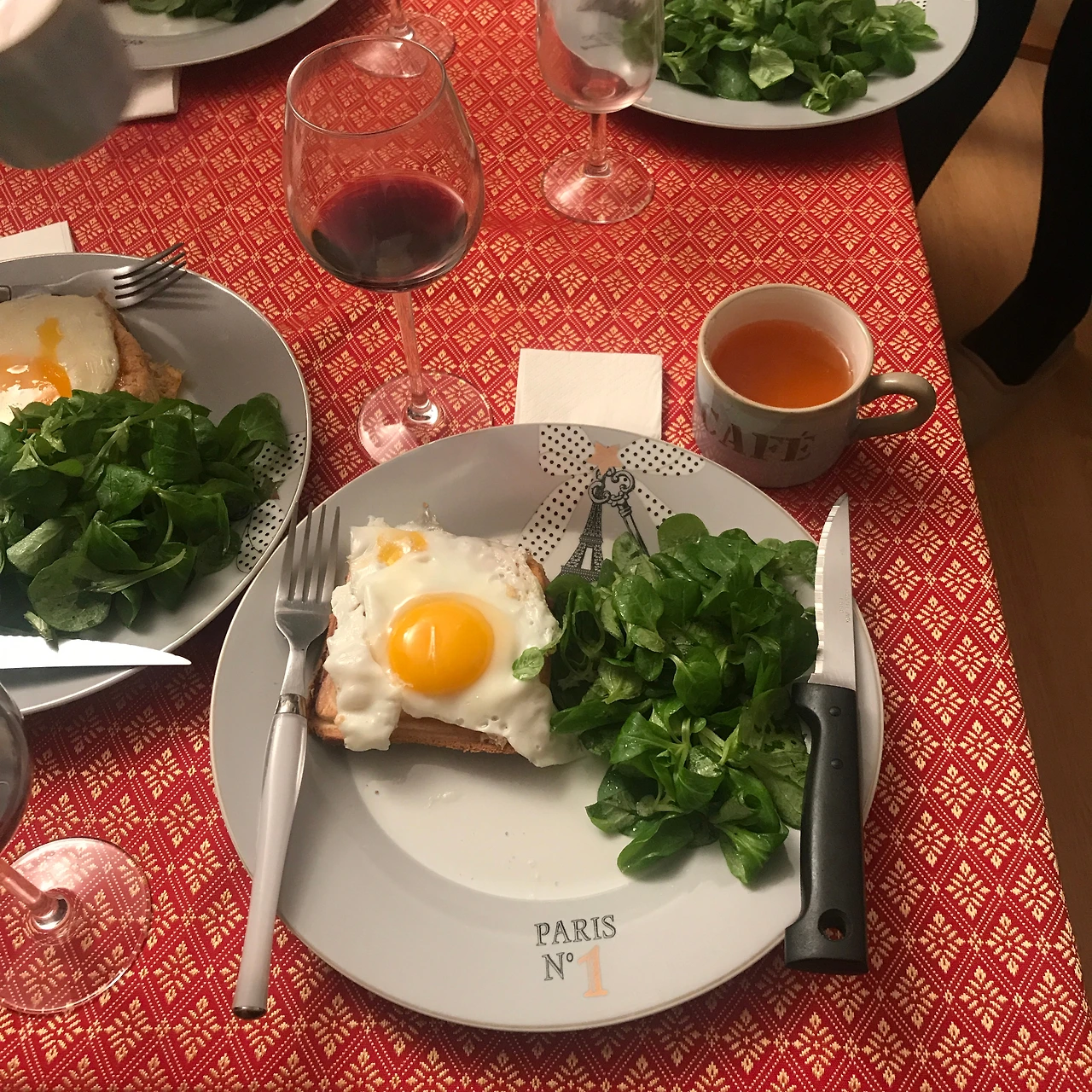 티 타임은 어느덧 와인 타임으로 변했고, 안주는 잘 익은 김치였다. 유럽에서 먹은 김치 중에 제일 맛있었다. 너무 좋아서 젓가락질하는 손이 떨리기까지 했다. 저녁 시간이 되자 Marie가 왔고, 그녀도 우리와 비주로 인사한 후 자연스레 대화에 동참했다. 한두 시간 머물다 가려고 했는데, 그들은 저녁을 함께 먹고 가는 게 어떻냐고 했다. 마리가 가장 좋아하는 크로크 무슈(Croque Monsieur)를 만들어주겠다며! 사실 속으로는 백번 예스를 외치고 있었지만, 지금까지도 얻어먹은 게 미안해서 괜찮다고 했다. 하지만 그들은 '한국인들이 예의상 거절하는 문화'까지도 알고 있는 세미-한국인이었다. 우리에게 편하게 생각해도 된다며 잠시만 기다리라고 했다. 그러더니 빵 위에 햄과 치즈, 계란 프라이를 얹은 크로크 무슈를 만들어왔다. 거기에 샐러드와 상큼한 사과주인 시드르(Cidre)까지. 맛은 일품이었다. 고마운 마음에 작은 보답이라도 하고 싶었다. 내일 올 때 뭐라도 사가야겠다고 생각했다. 인생은 이렇게 한 치 앞을 모른다!